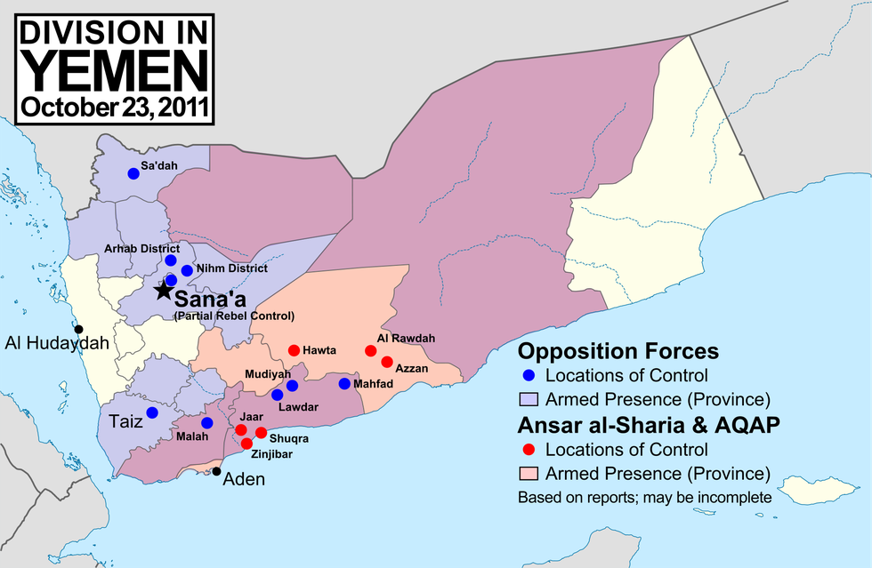 The Yemen Civil War is between two factions that claim to constitute the Yemeni government. The southern separates are loyal to President Abd Rabbuh Mansur Hadi while the Houthi forces are loyal to former president Ali Abdullah Saleh. In February, President Hadi "escaped from house arrest...by dressing as a woman, wearing a long black chador covering all but his eyes." Security in Yemen is divided. Some units are fighting for Saleh; others, Hadi.