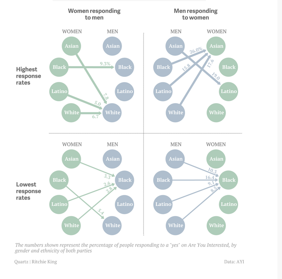 As you can see in this survey, in the "lowest response rates" men of Black, Asian, Latino and White races have said that Black Women are the least desirable when it comes to dating.