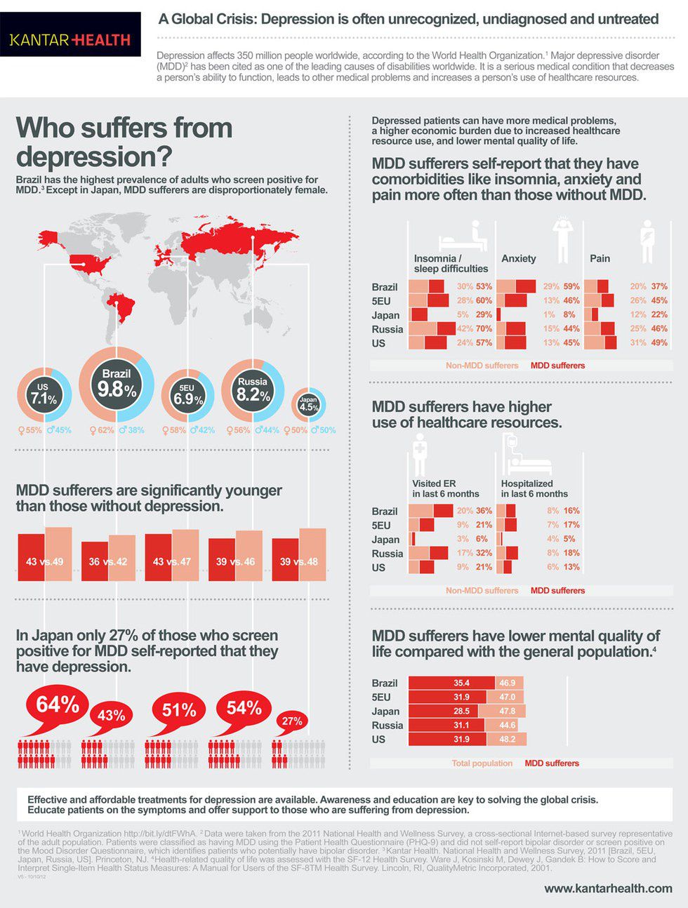 (The photo above shows are more in depth explanation of the number of people around the world suffering from depression)