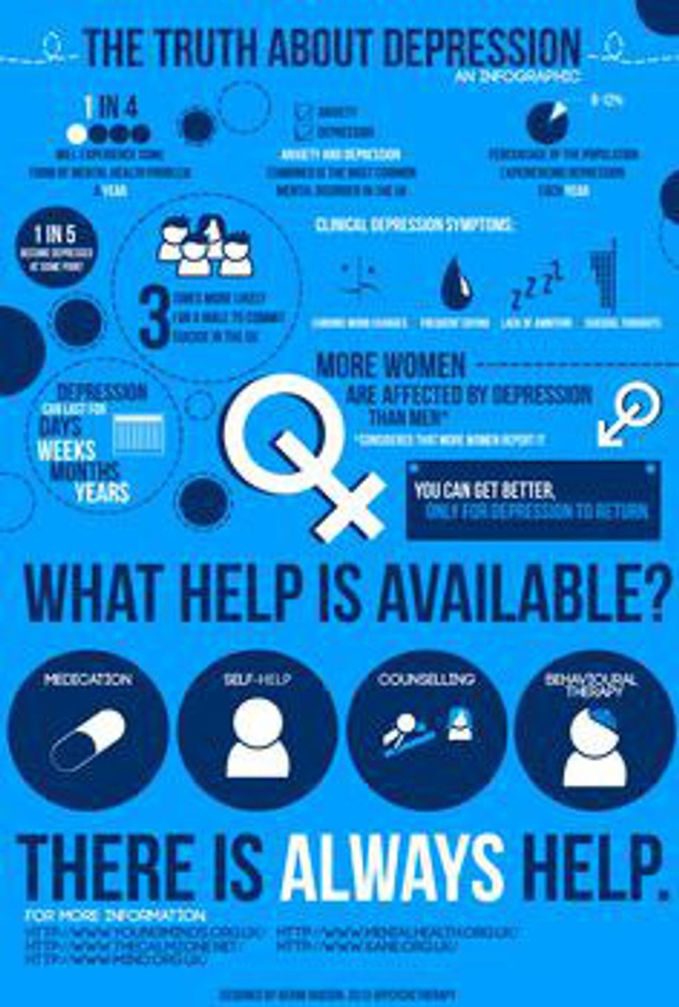 (The photo above is giving some basic information on depression as well as some ways to get help or help others)
