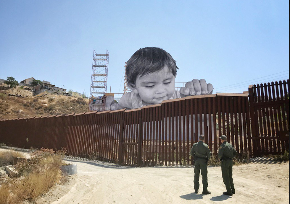 Not necessarily in response to this political decision, French photographer, known as JR, printed a giant picture of a young Mexican boy peering over the Mexican- American border. The picture is placed on the Mexican side, so the front view of the peering can only be seen from America. Originally, JR, wanted to take a series of photos of immigrants who are virtually the Ellis Island transports of today. The photo will stay up for a month.