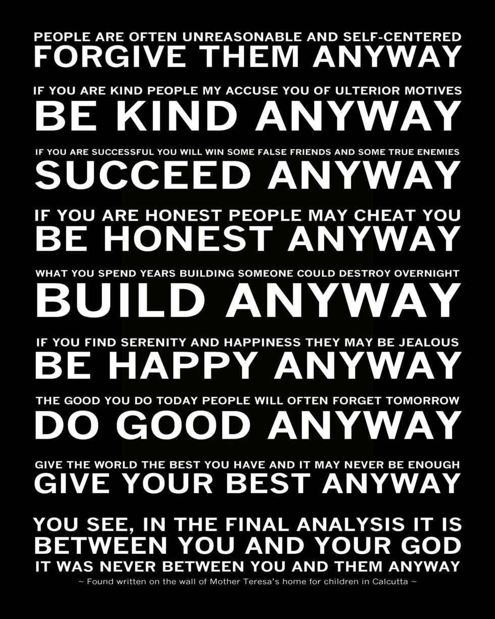 If there's anything I've learned over the past few years, it's that it's incredibly important to always believe in yourself. A few years ago, I lost one of the most important people in my life, my grandmother. Prior to her passing, she left me with a poem titled "Do It Anyway," (pictured above) by Mother Theresa. Upon receiving it, I had no idea how much this one singular poem would come to mean to me. However within this poem are seven lessons to be learned and applied into your everyday life that will make you feel the immensity of your self-worth.