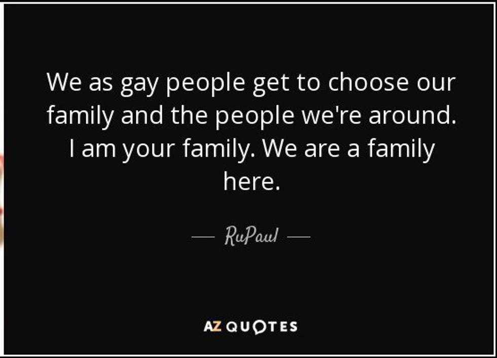 On an episode of "RuPaul's Drag Race," RuPaul says a quote that did and has stuck with me for years, "We, as gay people, we get to choose our family and the people we're around."