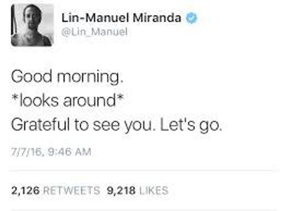 ALin-Manuel Miranda is one of my heroes, for many reasons. I first heard his name from the hit Broadway musical" Hamilton". Honestly, the first time I listened to it I didn't like it. I thought it was a ridiculous idea and absurd. A few months went by, and I tried again. This time I fell in love. I don't know what changed in that time, but I'm glad it did because my love of "Hamilton" has blossomed into a slight obsession. (Maybe a little more than a slight obsession.) Miranda read an biography about Alexander Hamilton's life and thought it would make a great rap musical, and it sure did. It is his brainchild. He wrote the book, score, and starred in it. How?! I still ask myself that question everyday.