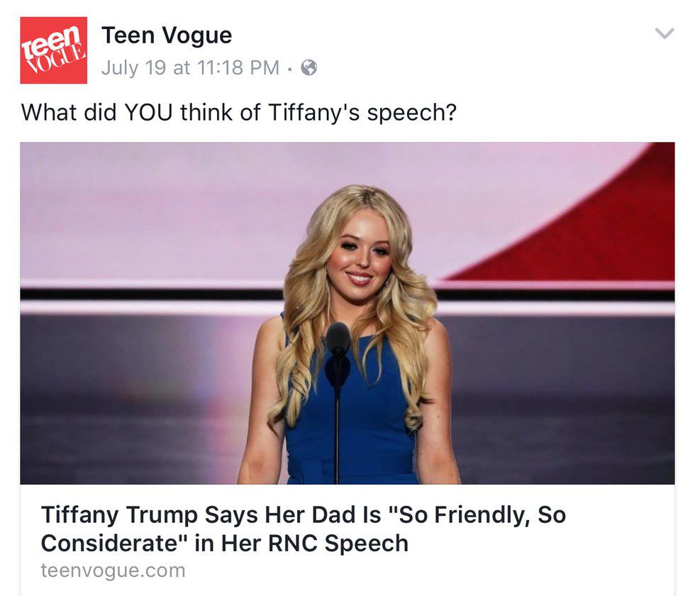 Speaking next about both Clinton and Trump's daughters, Tiffany and Chelsea, we can compare the bias that Teen Vogue also threw to both parties regarding said speeches.