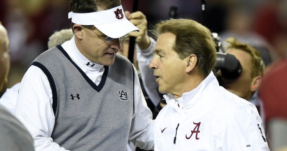 Gus vs. Saban. The Bear vs. Shug. Tommy Tuberville vs. whoever happened to be Alabama's coach that year. To fans, their coach represents the correct path for a succesful football program and for a succesful program of being a mentor to the young men on the field. The leaders of both teams now represent that well. Nick Saban is percieved as a more hellfire and brimestone coach, whose rath extends off the field and to the media as well. Gus Malzhan brought the new to Auburn, through the no huddle offense, and has expanded the idea of the Auburn community as being a family.