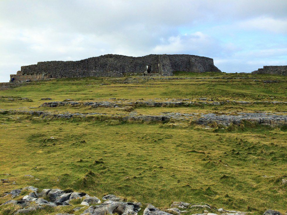 As we left the old leprechaun house for a more ancient site, we drove along a winding, rocky, one lane path, pulling over to the side of the almost nonexistent road to accommodate other tour busses coming in from the opposite direction. I looked out at the barren fields, divided into almost perfect squares by dilapidated walls of rocks standing about three feet high. I looked out at the dark ocean, at the harsh limestone Burren, and started to take in the unconventional beauty of the place. However, this was all nothing compared to what awaited us at the top of a 20 minute hill climb to Dun Aonghasa.