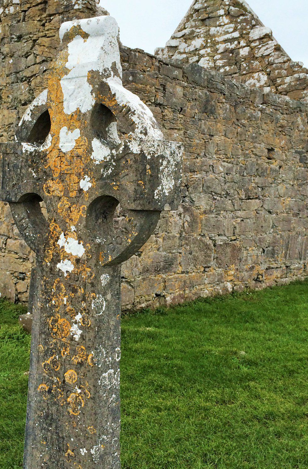 We passed by this area called Seven Churches ("Na Seacht Teampaill" in Irish) with several broken down churches dating back to the ninth century A.D., and gorgeous old tombstones topped with Celtic crosses. Everyone walked around slowly, contemplating the gravity of the place, but our minds still stuck on the cliffs of Dun Aonghasa.