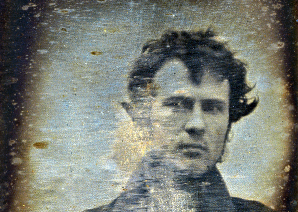 In 1839, Robert Cornelius created the first ever self-portrait. In November 1839, Robert Cornelius ran into the frame and sat still for five minutes before running back and replacing the lens cap. In doing so, he had created what is believed to be the first photographic self-portrait.