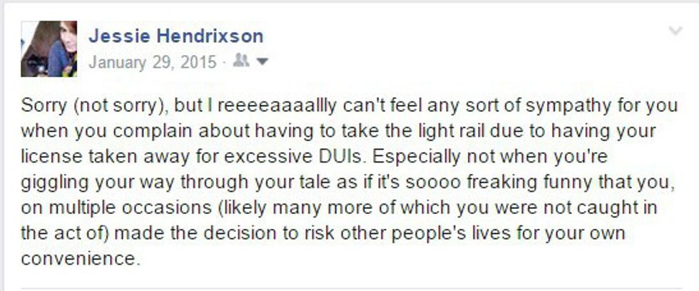 I simply don't have sympathy for anyone who gets a DUI, but especially not when they think it's something to brag about. Good for you! Here's your asshole award.