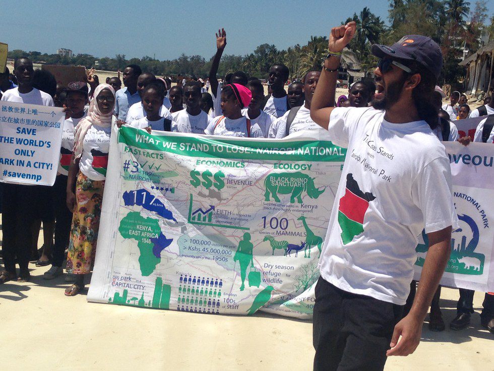 I had the privilege of attending the march in Mombasa on the public beach in Mombasa. After getting people registered, there was a short media break, and then off we went. There’s something incredibly powerful about three hundred plus people chanting to save their park. The big chant was “Haki yetu. Wanyama wetu.” which translates to “Our heritage. Our animals.” Two phrases that packed so much power, because that is what Nairobi has to lose if phase two of the standard gauge railway isn’t re-routed.