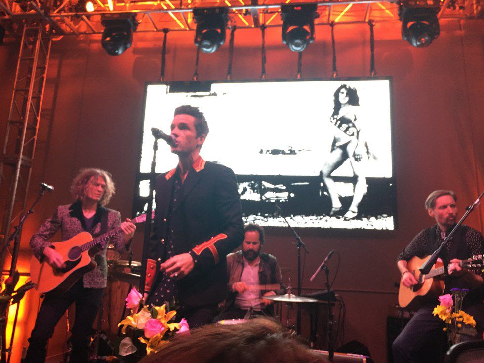 My best friend turned to me and said, “I don’t have to call you during the show anymore!” with tears in her eyes right before the screen covering the stage with the projected intro video dropped to reveal The Killers behind it as they started playing “Sam’s Town.”