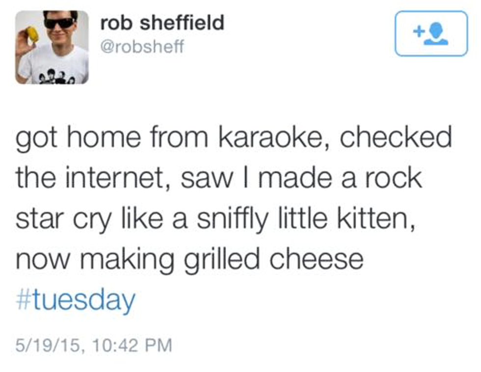 Sheffield did what all reasonable adults do and subtweeted about Flowers later that day. The interesting thing is that dear Rob has since deleted that tweet. But the internet does not forget, Rob. Victims especially do not forget, particularly after you continually think it funny to be rude towards a member of our favorite band. Sheffield did reply to someone when they brought up Flowers. That tweet has not been deleted. #adults