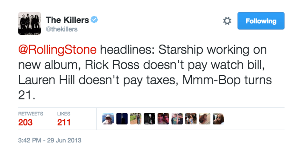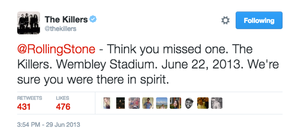Going back to 2012, The Killers played a sold-out show in Colorado that Rolling Stone reviewed as being barely being full while also just providing a variety of backhanded compliments, which led bassist Mark Stoermer to go to Twitter to call them out for their inaccurate journalism.