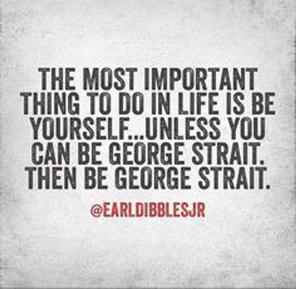 Have you ever wondered why George Strait is called the King of Country Music? It's because he is true. He sings songs that all people can relate to. He is "life, love and wholeness in its entirety," as my best friend would say. He is "The Man," as my mom would call him. He is country music.