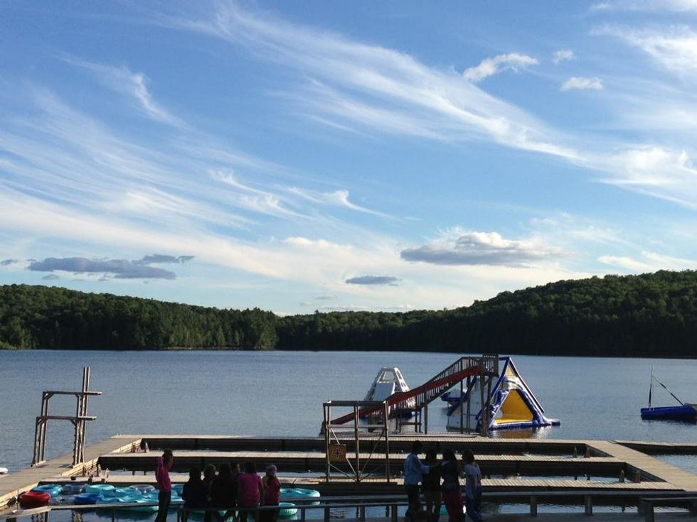 We walk through Boys Camp. We passed the hill up to skateboarding; my least favorite period at camp. Just the thought of the buckets filled with stinky elbow pads and kneepads makes me gag. Before I know it I am standing at Main Docks. I see those sailboats drifting as far as the rope will let them in the lake and the inner tubes sitting in the first area of how the docks are separated. I see the tower rocking back and forth with the dock in the distance. And I see the trees. They were painting the sky. I never believed they were real until I took a canoe all the way to the side of the lake and saw for myself that they were rooted into the ground. All the hangouts on main docks, all the 2-day color war openings, when I was captain and crowned winner of Olympiad; it all happened here. When I had to mud wrestle Alexa and lost was right here on the sand.