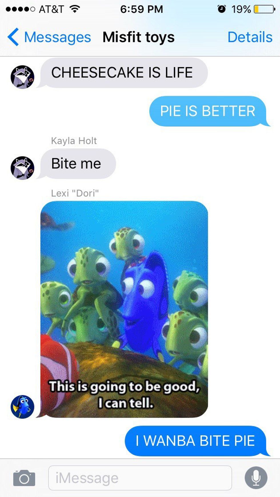 MY PUN LOVING CINNAMON ROLL!! What can't I say about you?? You're the "punniest" girl I've ever met. You know when we all need to laugh and you never hesitate to come up with some form of clever word play. You're the gang's cinnamon roll. Even though we know you can take care of yourself, we love to keep you under our wings. You're smart, adorable, AND HAVE THE POOFIEST HAIR IN THE WORLD <3 You basically complete the group! You're laughter is the best thing ever (and it's so close to mine!). We love you soooooo much, girlie, even if you're memory isn't the sharpest (P. Sherman 42 Wallaby Way Sydney!).