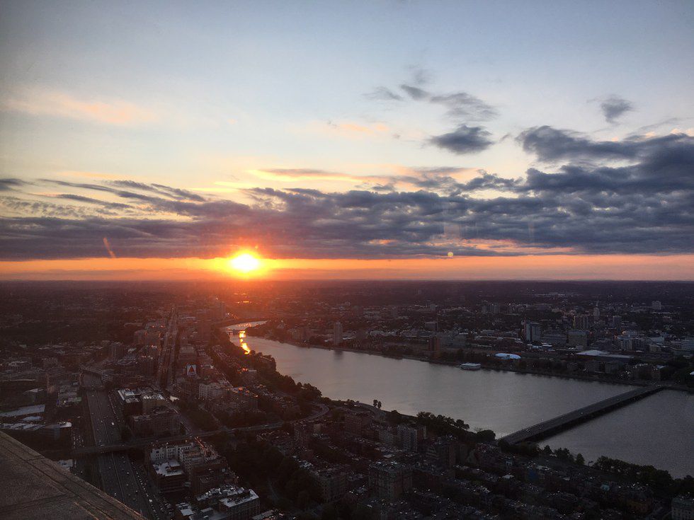 Sunset always captures the best view from the top of the hub. I love the river in Boston as well as the one with mesmerizing water fire.