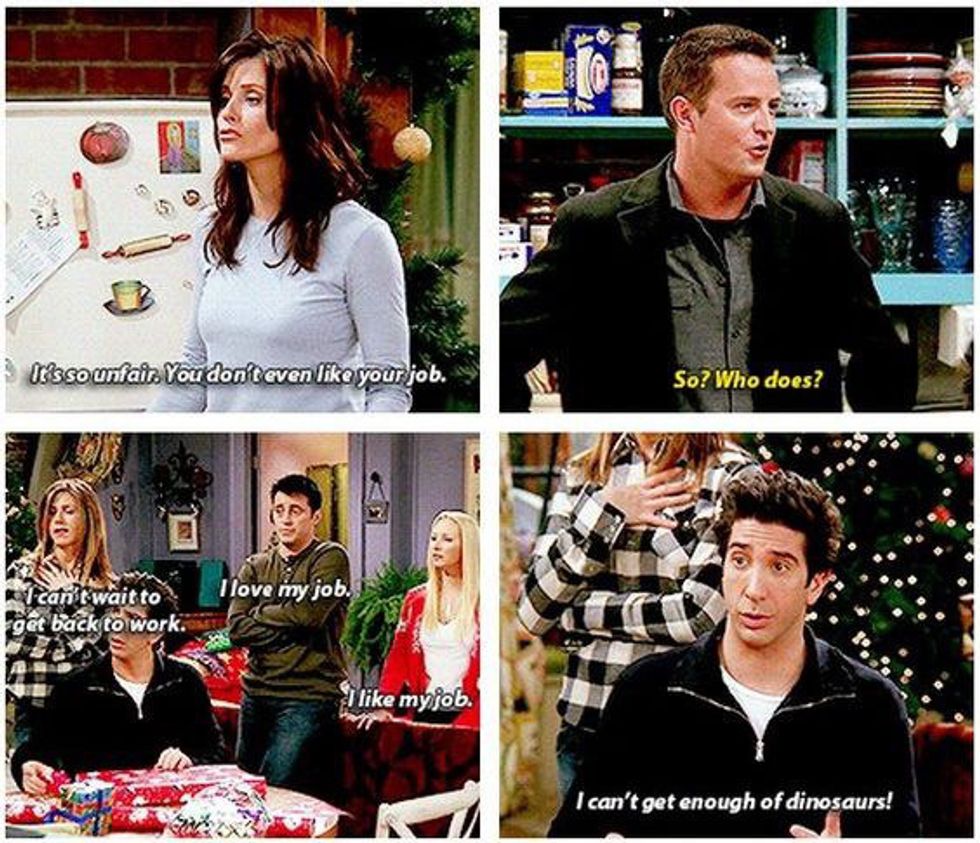 It is the last week of the semester at USF. There are tears, finals, sleep deprivation and lots of coffee. This is my first fall semester at USF and I loved every moment that I had with the people that I befriended. You have two emotions: happiness and sadness. Happiness, because you finished a semester of college and you get to go back home for a month. Sadness, because you are leaving college for a month. You don't get to see your friends unless you made plans. I am also sad because my roommate is moving back to Chicago and not coming back in the spring. I am going to have a new roommate and I don't know how I feel about it. This is the last week of the semester as told by "Friends."