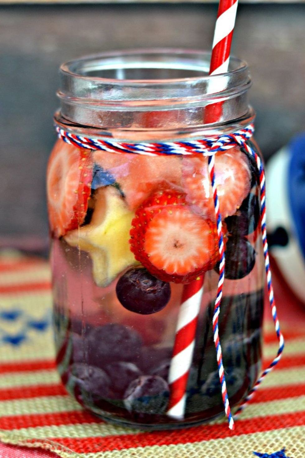 Strawberry and blueberry water is a wonderful way to spruce up some water this 4th of July. If you want to make your drinks look pretty try putting them in mason jars and having individual servings. If you want so sweeten this up a bit add a dollop of honey and shake, it'll give this a refreshing natural taste. (You can find the recipe here.)