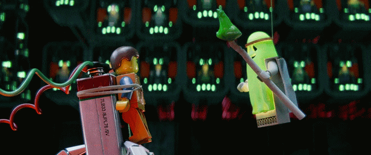 The second scene comes after (spoiler warning) Vitruvius (Morgan Freeman) is killed by Lord Business and returns as a spirit to give the Emmet advice. This is a trope in most adventure films, when the old mentor dies but can still give advise via ghostly projection (Obi-Wan Kenobi and Gandalf are a few examples). So does Vitruvius come back in a dramatic fashion to emphasize the emotional power of this scene... nope! Insteade he comes back looking like a stereotypical ghost (white sheet and eye holes), floats via a string attached to his back, makes stereotypical ghost moans (woooooo) as he moves, and is comically flailing around like the person on the other end of the string is moving him to much. While all of this happens, Vitruvius continues to give Emmet sage advice. Both of these scenes are funny because they are absurd subversions from expected tropes.