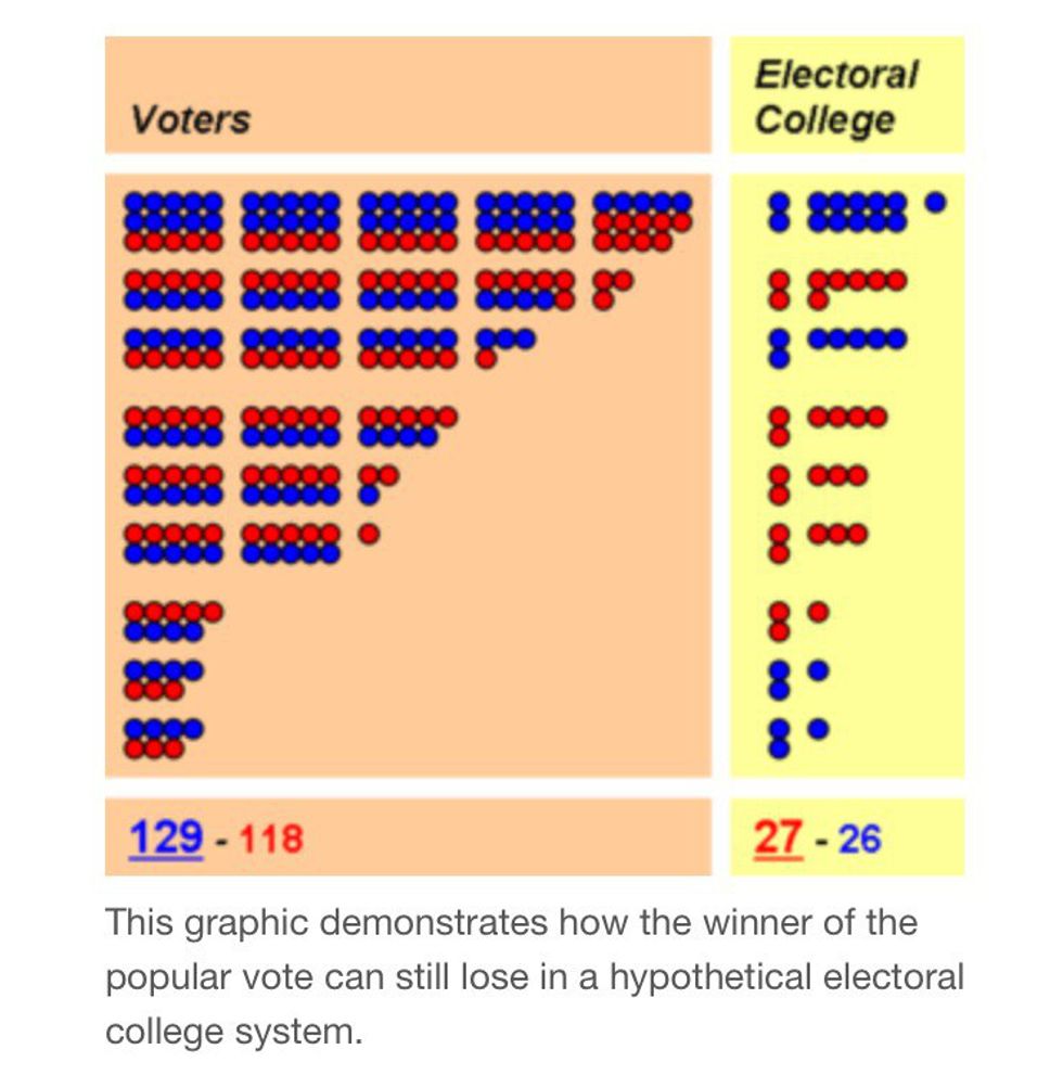 While these chosen individuals are people they are not "the people". This is another loss for the American people especially in this specific election. Thankfully, only once in the modern era has the electoral college failed in electing the candidate elected by the popular vote; in the 2000 election of George Bush, but in an election as polarizing as the one that we currently face with controversial candidates, how can we feel comfortable that an electoral college will correctly choose who the electorate wants when the electorate is confused about the candidate it desires?