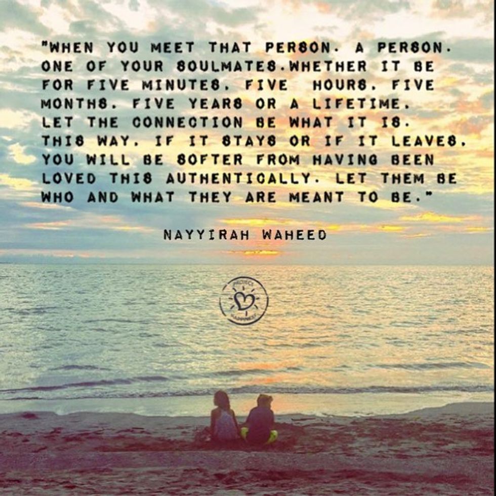 I believe there are different categories of soulmates. You have your friend soulmate (typically your best friend), you have your love soulmate (the person you choose to marry or spend the rest of your life with), and then the lesson soulmates. The lesson soulmates are exactly what they sound like- they teach you lessons. Like the picture above says, they may be in your life for a few minutes, or a few days or a few years. But their purpose is to teach you something that you won’t learn if they stay. And if you don’t learn it, your life will be drastically different- and not in a good way.