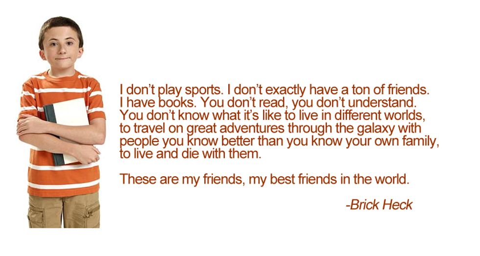 The life of a bookworm is a consuming one in which everything revolves around books. How many you have, how many you've read, when you'll get time time to purchase and read more, and so on. Us bookworms get excited when we find others with a mutual love, and even more excited when we find an accurate portrayal of a book lover in a TV character. Here's a glimpse into the life of a bookworm, as told by the ultimate one himself, Brick Heck from ABC's "The Middle".