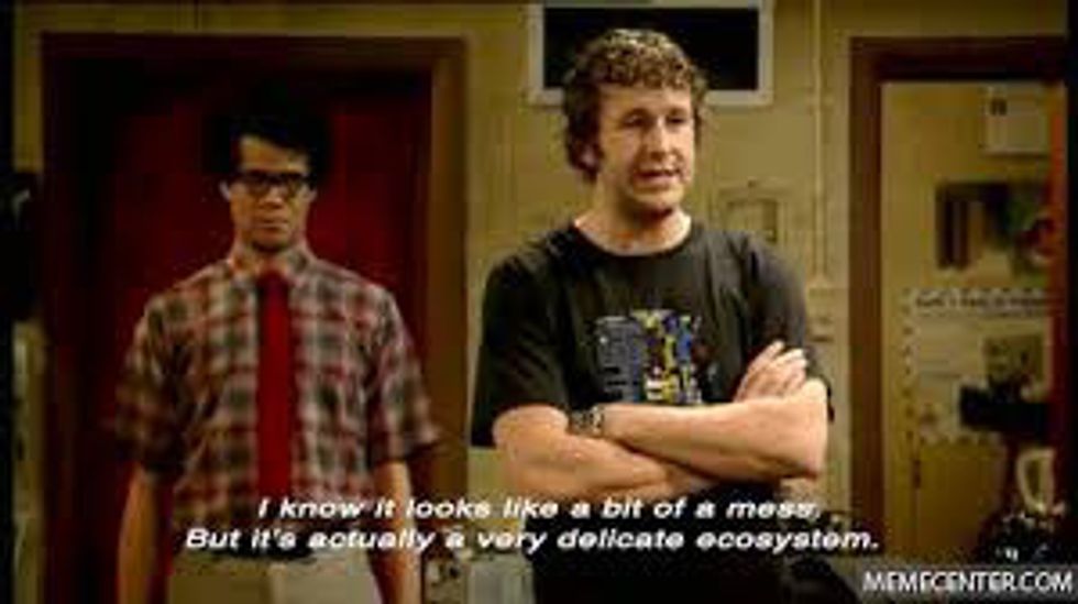 I realize not everyone abides by the same rules of Hakkuna Matata, and I do try to be respectful of their way of life. I try to keep my mess contained to my side of the dorm room. If I know people are going to be riding in my car, I make sure all food products have been properly disposed of and all clothes are tucked under the seats. I at least attempt to be courteous of others in my hurricane-esque state of being. However, I think a little mess now and then would do the world a bit of good.