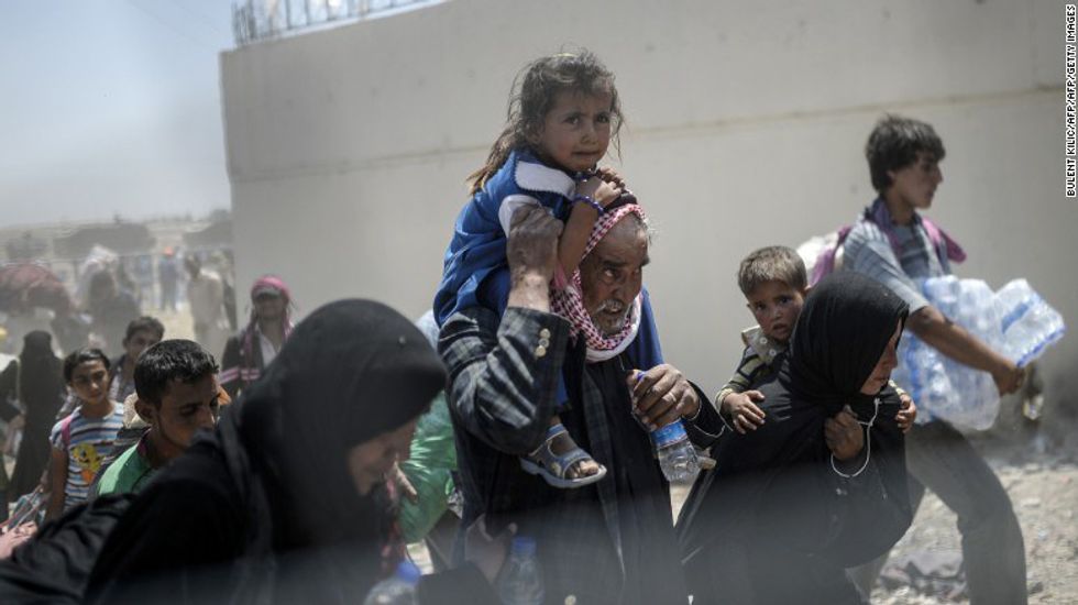 Syrians fleeing the war walk towards the border gates at the Akcakale border crossing, in Sanliurfa province on June 15, 2015. (CNN)