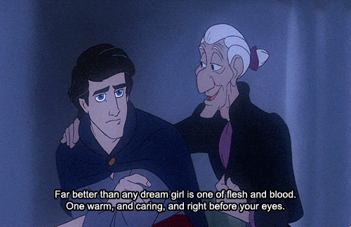 This, in no way, is advice to settle, because we all do deserve the very best. We all deserve someone who makes us genuinely happy 99.9 percent of the time. This is, however, advice to see people as they are and not compare them to dreams we make up in our heads. Although Eric didn't materialize the girl who saved him in his imagination, the thoughts prevented him from really seeing Ariel's true, caring soul. (Why else wouldn't he "Kiss the Girl"?!?!?!)