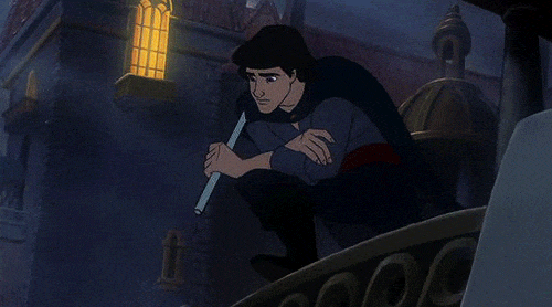After Ariel first sees Prince Eric celebrating his birthday, a storm sends the ship to its watery grave. She rescues him and for the rest of the movie, Eric is obsessed with finding the mystery girl who saved him. He doesn't remember a lot about her, other than her voice. (He apparently doesn't recognize Ariel when she gets legs, even though I'm pretty sure he had a clear look at the girl's face).