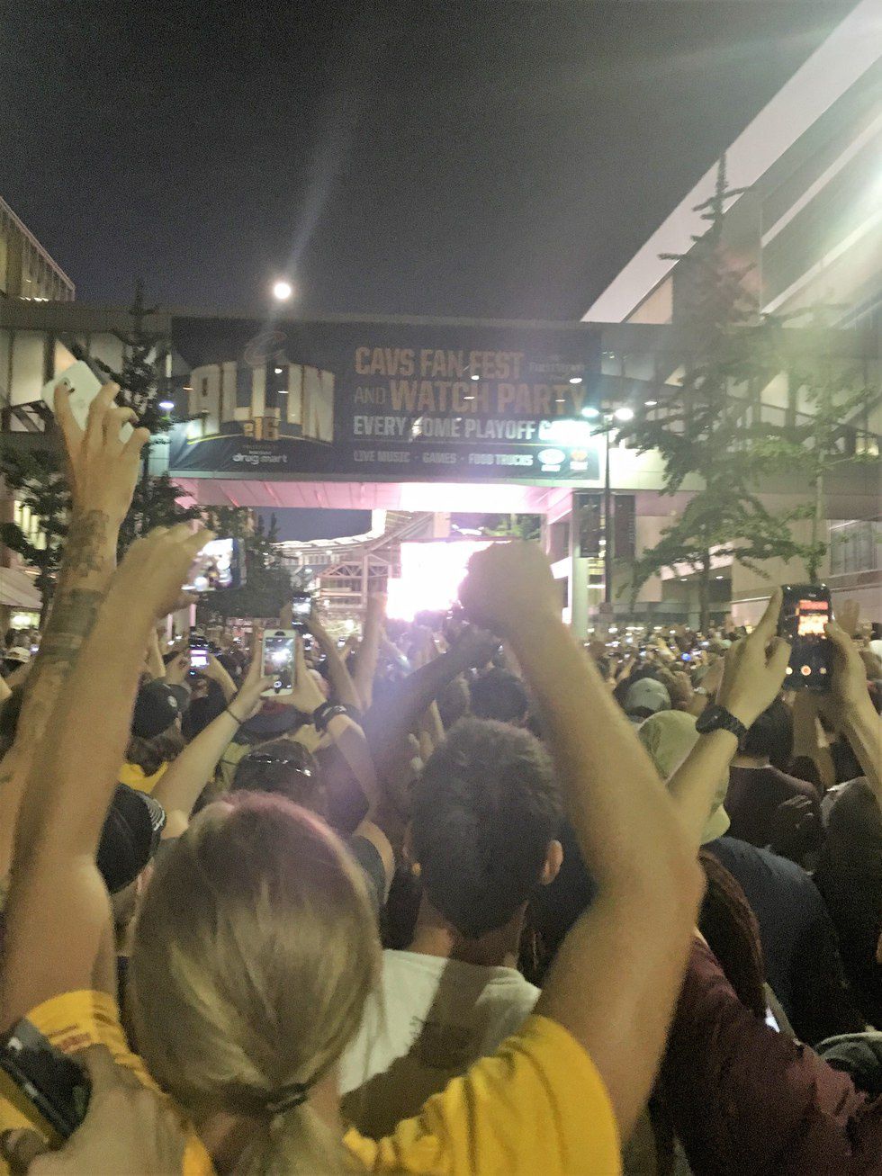 In the midst of all the finals excitement, I knew I had to join in on the once in a lifetime celebrations. On Sunday, the day of the Cleveland Cavaliers and Golden States game 7, I trucked it on over to downtown Cleveland to witness the madness, and be among the diehard #AllIn216 fans. What I experienced was absolutely breath-taking. From everyone being packed in bars like sardines, to seeing Kyrie’s famous 3-pointers on mega-screens, with thousands of cheering fans around me, I was in awe, and truly living in the moment. I have never received that many high-fives in my whole life. There is something truly special about being around an enormous amount of people, who come from all different backgrounds, and congregate together to cheer for a team that they believe in. This might sound crazy, but I think the best part of the whole night was walking back to the car and driving home. The game had ended, Cleveland was a champion, and everyone wanted to celebrate. Walking back to the car, I saw the whole city come together yet again and continue to celebrate the victory. In the rows upon rows of cars in the streets, there were people running through the lanes, high-5ing all of the passengers in the cars. There were others who were beeping their horns in celebration all through Cleveland and northeast Ohio. Game 7 showed all Cleveland fans that they not only the best fans in the land, but now the best NBA team in the world.