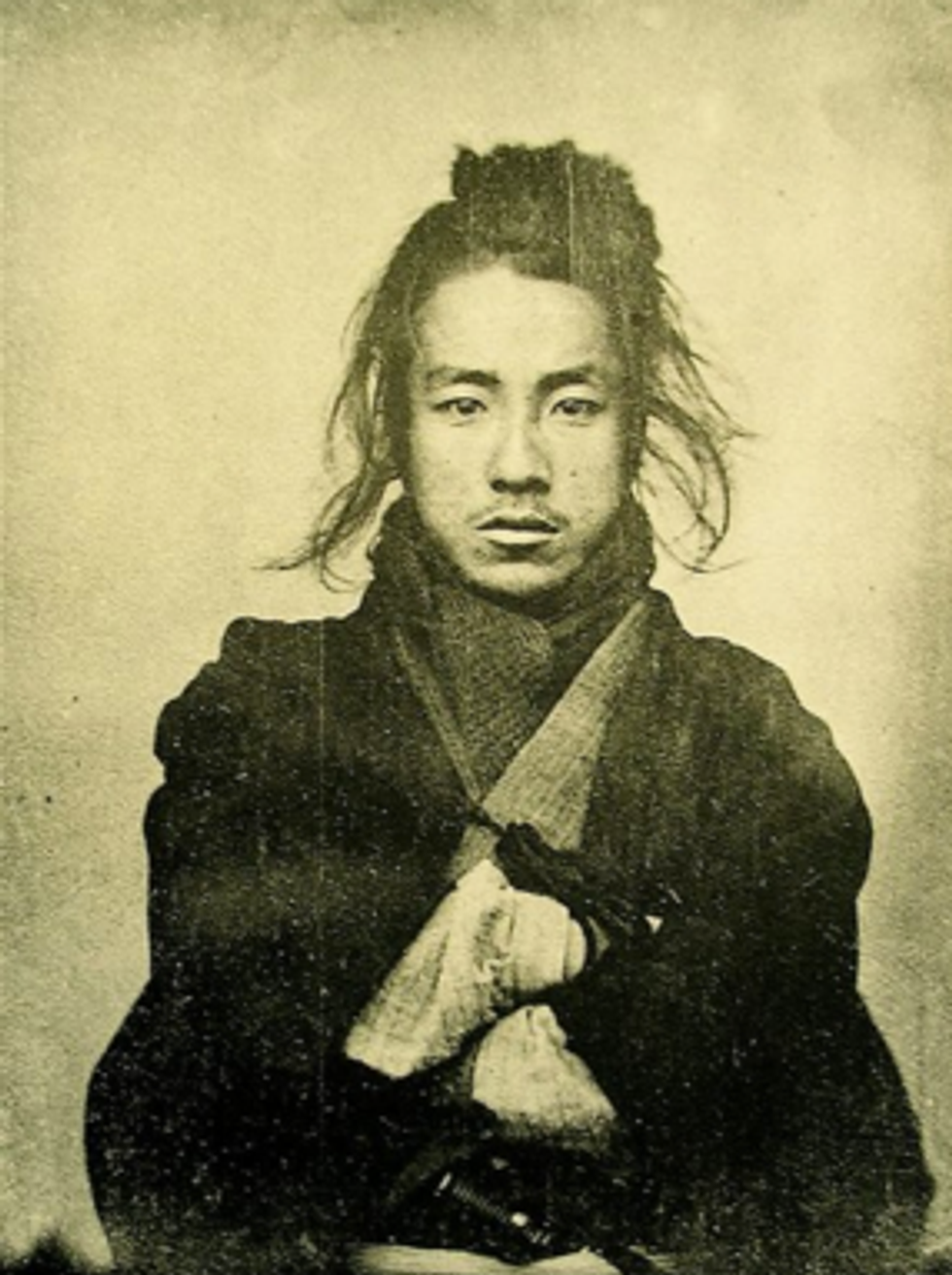 This prince of Japan has a harsh facial express going on but that messy bun is on point. The style suites him.