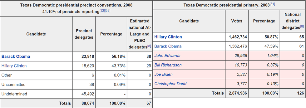 Not only is voter turn-out low, but who turns out to caucuses is different as well, changing the outcome of who wins. For example, some states have, in the same year, done both a caucus and a primary. This was the case in 2008 Texas, where Obama won the caucus and lost the primary, but received more delegates than Clinton, despite more people voting for her overall. The caucus system rewards die-hard party members and activists who would turn out to vote no matter what the system.