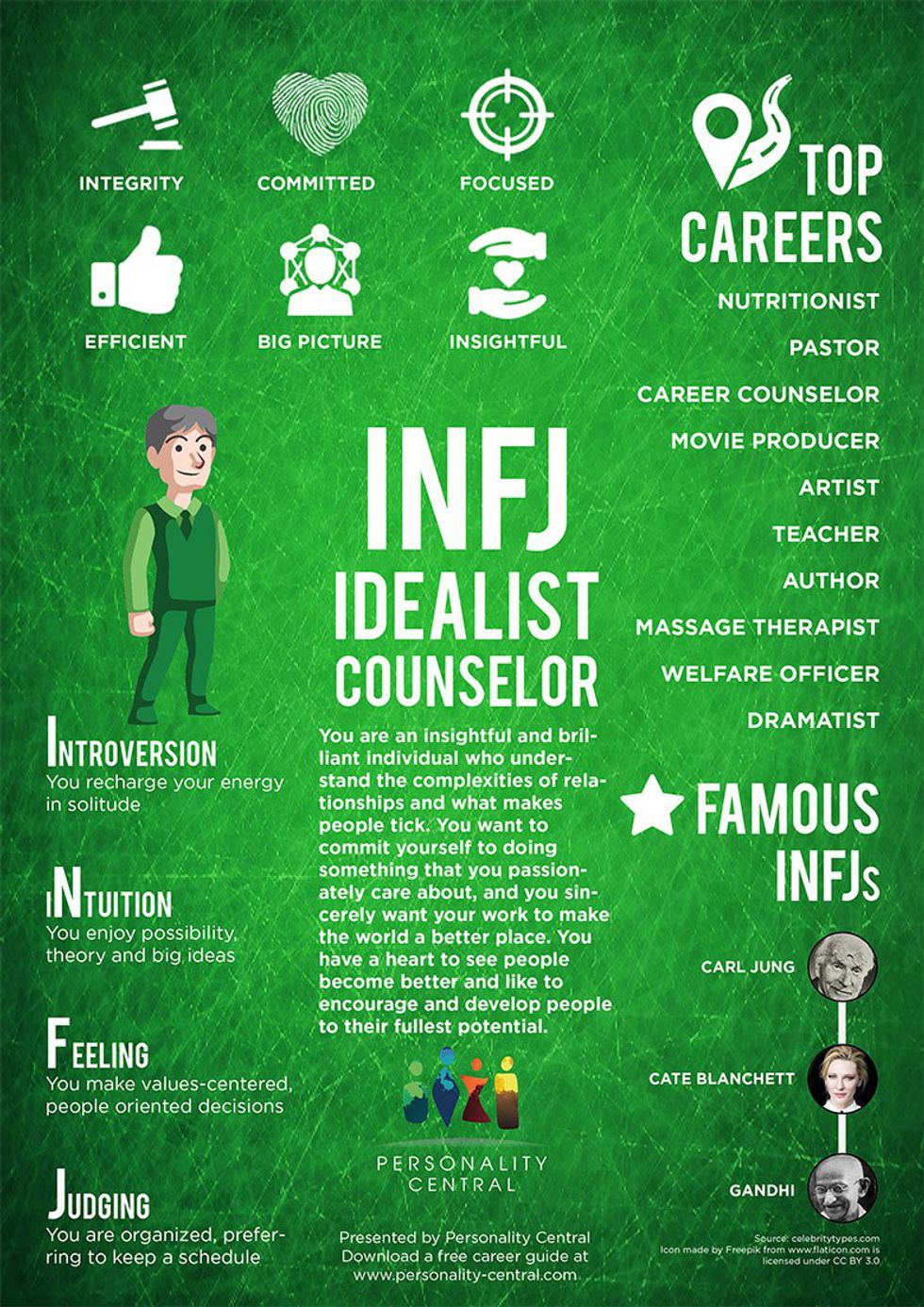 Even with all that said, this doesn’t just apply to INFJ’s – it’s all types. Anybody can find this to be a huge impact on their life as it’s enlightening to read a description of why one is the way they are. I highly recommend anybody to take the MBTI!