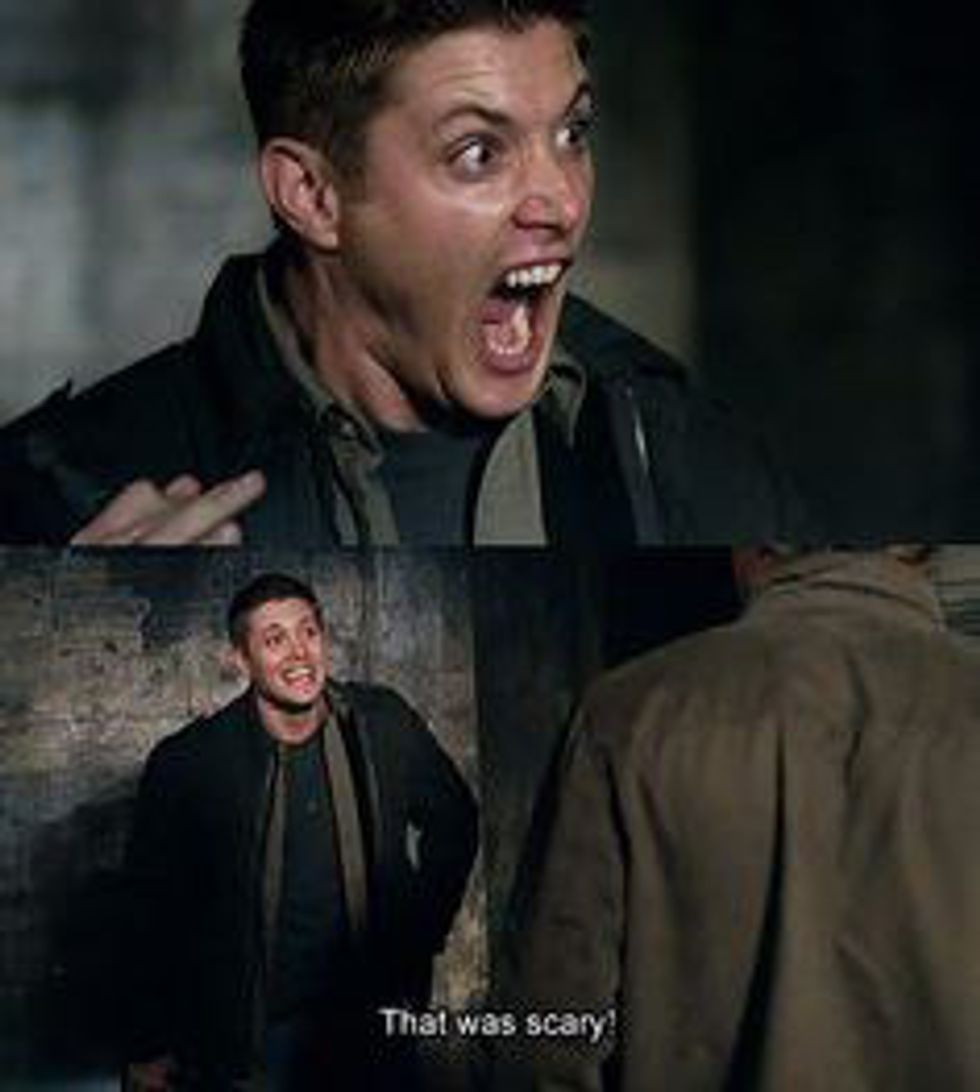 Even the guys who fight scary monsters -- literally, very scary monsters -- get scared sometimes. And when that happens, family steps up. Dean and Sam always have each others' backs (even when Sam loses his soul and drinks demon blood, and Dean literally turns into a demon). When Dean gets scared, though, it's hilarious. Like seriously, just look at him: