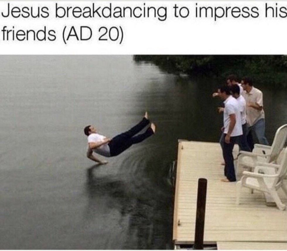 Jesus back at it again. Showing off all of the cool abilities God gave him. All he gave me was a Wii Sports bowling skill and a gracefully receding hairline!
