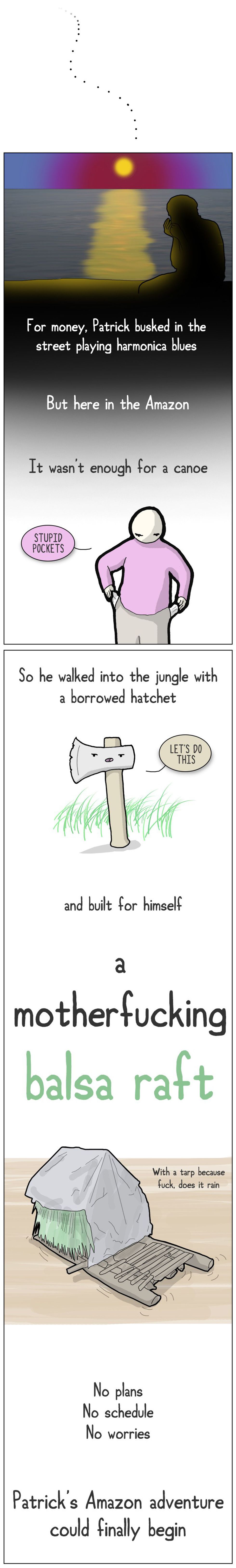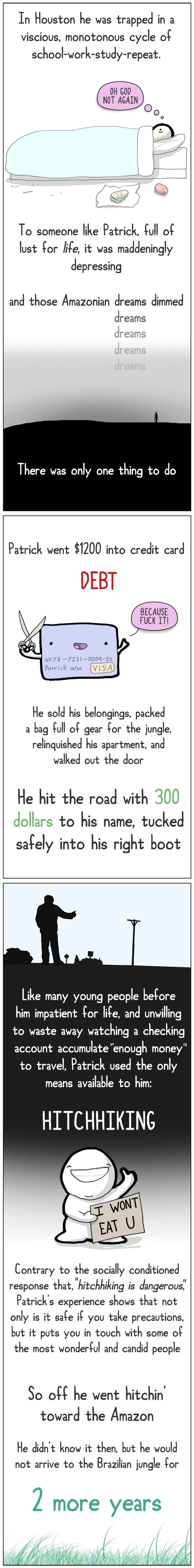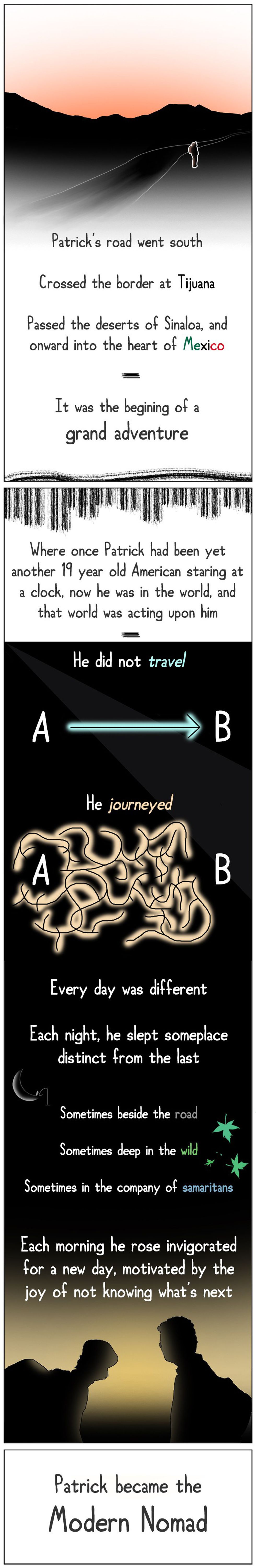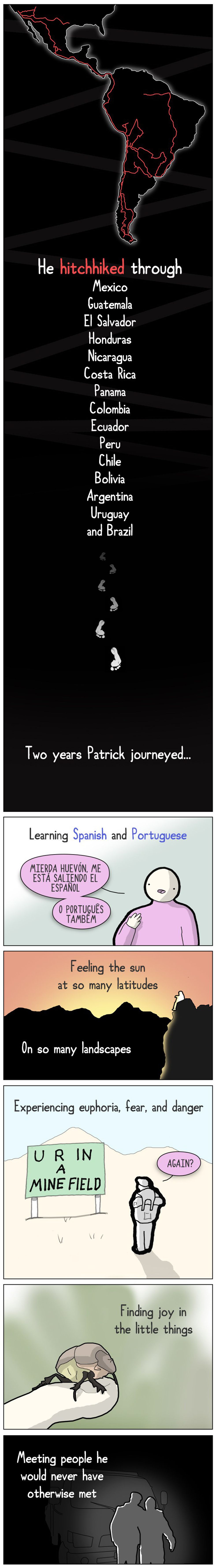 Before I took my backpacking trip across Europe I spent hours researching every detail of backpacking. I read websites on how to travel, read memoirs of those who traveled, I spent countless hours reading what-to-brings. One website that I came across more than a dozen times was Hitch The World. After hearing recently of his passing I came across this comic by Things In Squares and felt the need to share. Rest in peace Patrick Falterman.