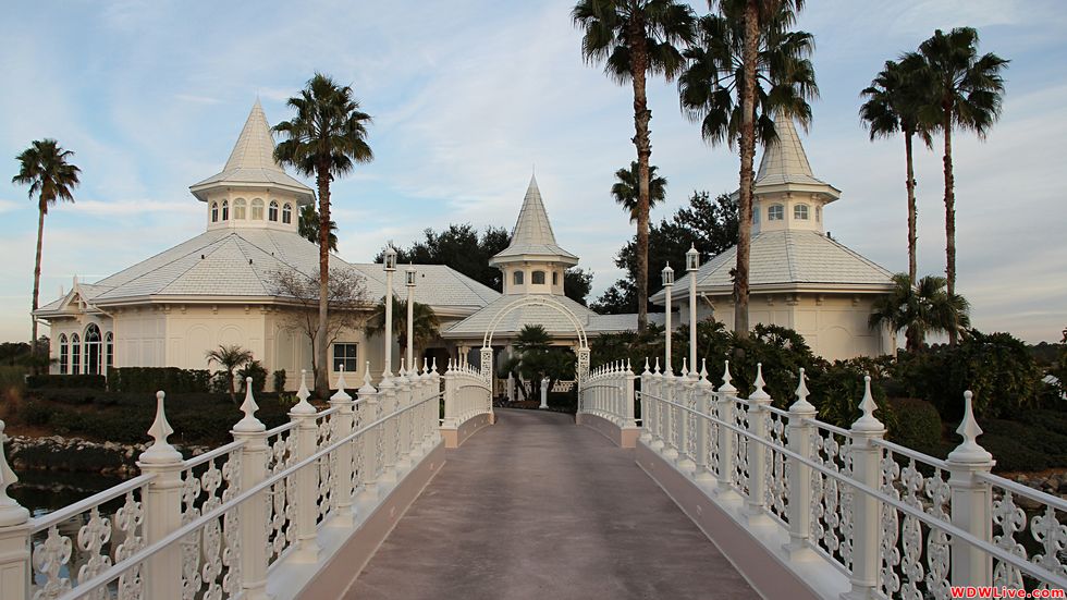 This most well known Disney wedding venue is a gorgeous place to get married in. Guests get to walk along a bridge with a view of Cinderella's Castle as they enter the pavilion. The couple gets to say "I do" with Cinderella's Castle in perfect view in the background.
