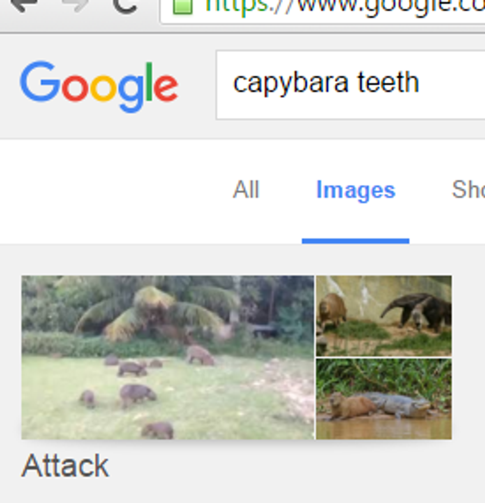 While I was looking for the above picture, one of the suggested searches was "capybara teeth attack."