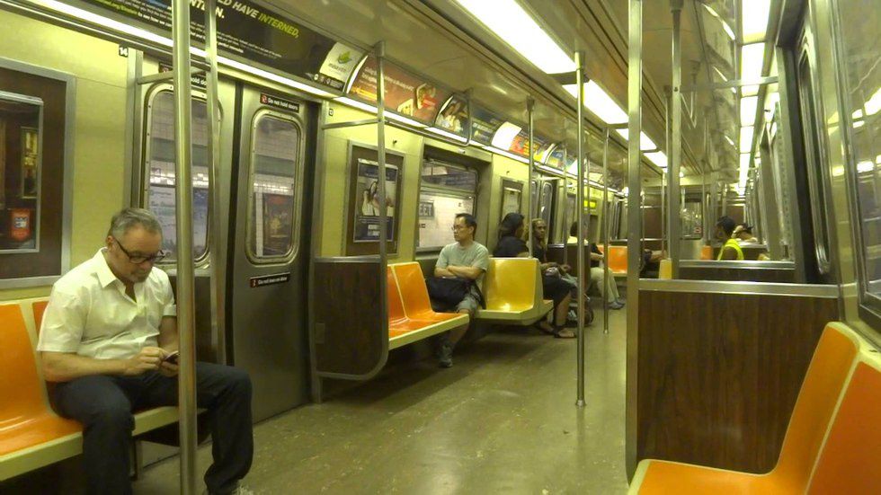 The A trains are covered in a hue that induces vomit. For most, there is a coffee-with-three- creams color draped over the walls and laid out on the floor beneath you. The only difference is the bright idea to put speckles of white, black, and pale orange in the flooring perhaps to distinguish it? Which the slabs of old, black gum pieces could have done seamlessly. On other A trains you might see a black floor be-speckled with white and blue dots. Though mismatched, it looks highly better. The seats are a preschool yellow and orange with cream trimming. It seems like the MTA needs to hire an interior decorator to get with the times. As one of the first subway lines, the A is in need of dire renovation.