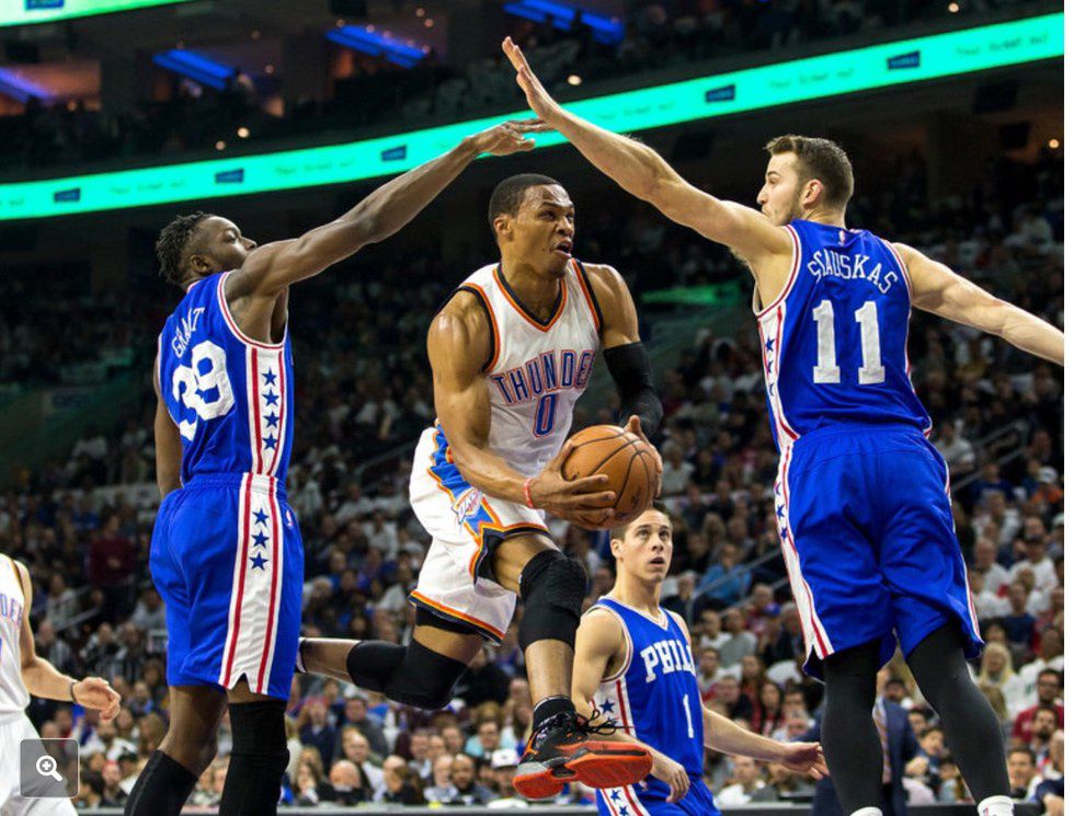 The Oklahoma City Thunder started their season off with what should've been an easy win against the Philadelphia 76ers. But, shockingly, the Thunder seemed to struggle. Well, they struggled, except in the caseof Russell Westbrook. He easily led the Thunder in points, rebounds, assists and shots attempted as they barely beat the Sixers with a 103-97 win. Expect to hear that all season. Westbrook is great enough to have an MVP caliber year but will his team follow in his footsteps? Victor Oladipo, Steven Adams and Enes Kanter please don't leave Westbrook high and dry this season.