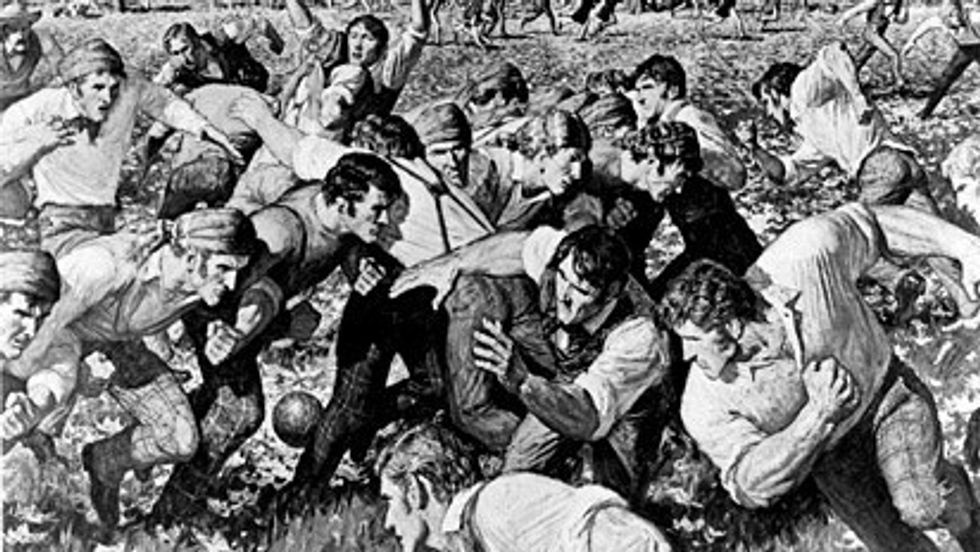 The first intercollegiate football game was played in New Brunswick, in 1869. Rutgers College played Princeton. Rutgers won. Beginning an age of collegiate football which still lives on today.