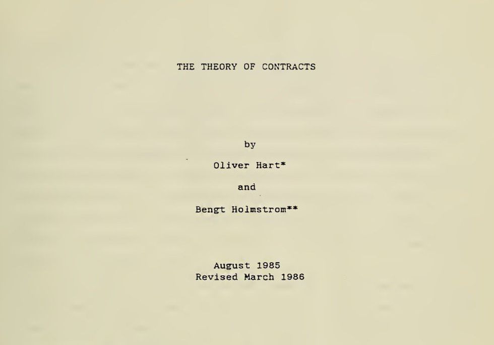 This year, the recipients of the “Bank of Sweden Prize” are Dr. Oliver Hart of Harvard University and Dr. Bengt Holmstrom of MIT for their riveting contributions towards contract theory. To summarize, they explored whether or not a company or government should take ownership or contract a service. They found that there exists a tradeoff between control and cost-savings.