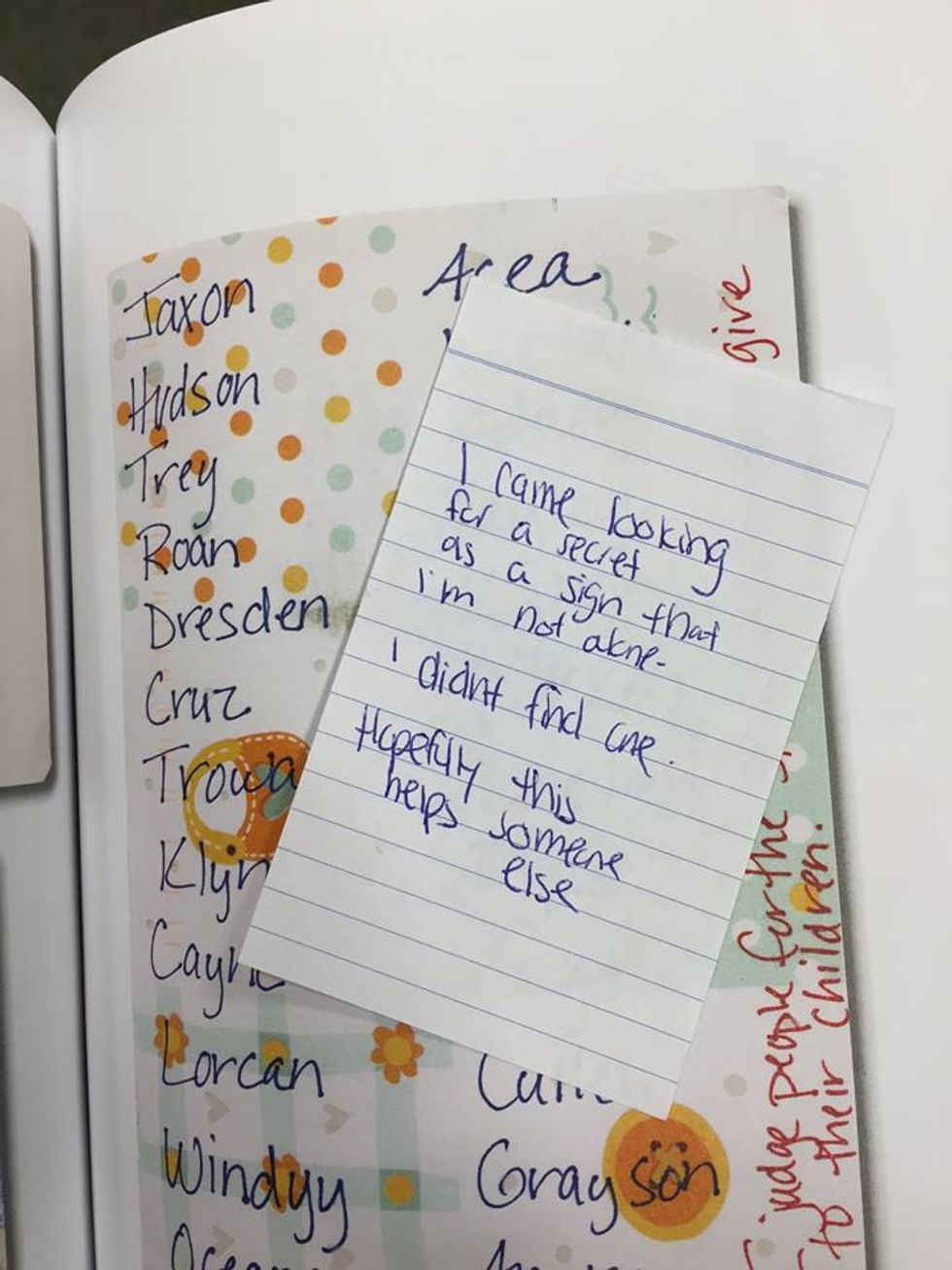 Facebook June 29, 2015 - "I found this secret in a book at the B&N in Waterfront in Pittsburgh. To whoever left it, thank you. It did help, more than you know.”