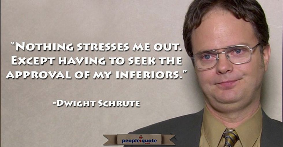 This time every year is probably the most dreadful and stressful two week period for college students. It's finals week. Students are stressed. Students are sleep deprived. Students just want to go home and do nothing over winter break. With the stresses of finals looming, here are some helpful quotes from the hard workers at Dunder-Mifflin.