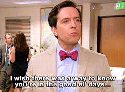 "I spent so much of my time here at Dunder Mifflin, thinking about my old pals, my college a capella group. The weird thing is, now I am exactly where I wanted to be, I've got my dream job at Cornell. And I'm still just thinking about my old pals, only now they are the ones I made here. I wish there was a way to know you were in the good old days before you actually left them.Someone should write a song about that." - Andy Bernard