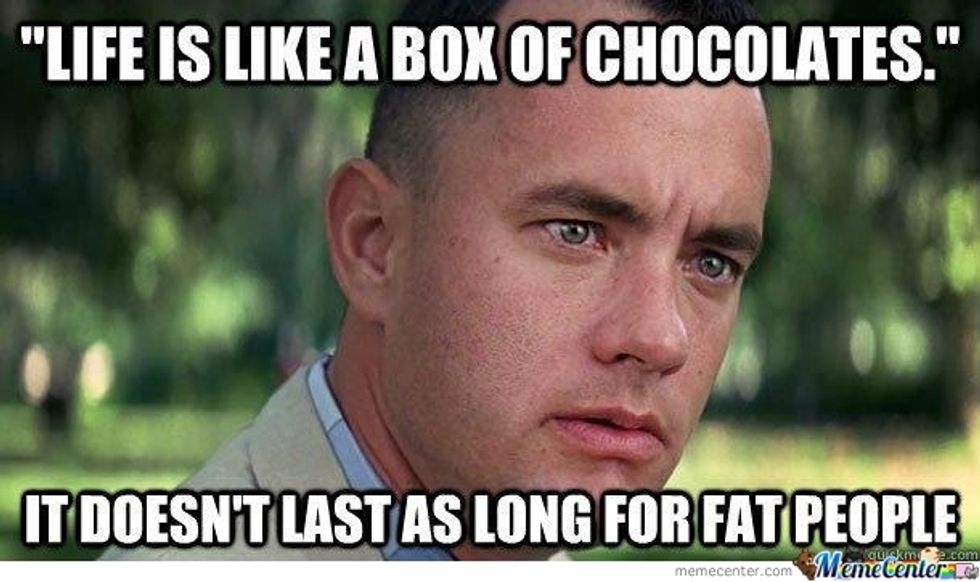 So, to sum it up: Not all of us can control our weight to the degree some might think; and even if we do starve ourselves in an attempt to do so, it ends up doing more harm than good. If you live a healthy lifestyle, you are healthy, even if you don't look just like the woman on the cover of your Beachbody PiYo At-Home Yoga DVD. Also (in my opinion), fat people are goddamn gorgeous, with their radiant smiles and vibrant personalities to match. The bravery to overcome the fear of social ostracization can, for some of us, make life worth living again. We don't need you to educate us; we've been educated by the looks on your faces all our lives. It costs you exactly nothing to type "you look awesome" instead of "probably should've left it on the rack".