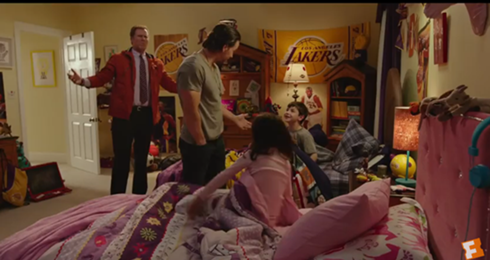 Wahlberg and Ferrell compete as Dylan and Megan lay down for bed.